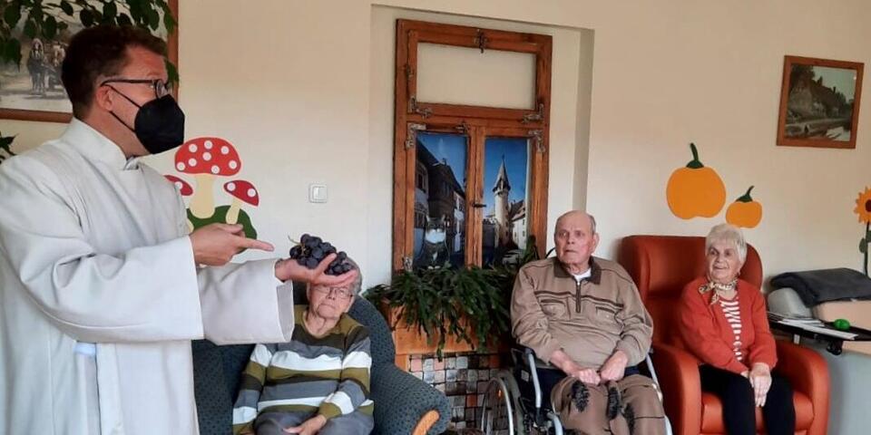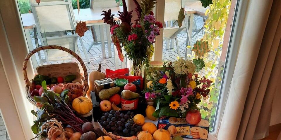 Mit wundervollen Herbstfarben und bestem Sonnenschein starteten die Mitarbeiter mit den Tagesgästen der Johanniter Tagespflege in Heldburg, traditionell in einen goldenen Oktober. Zu Beginn des Monats wurde am 05. Oktober die Feier zum Erntedank nachgeholt. Im Rahmen einer Andacht durch den Diakon Herr Strümpfel, dankten die Tagesgäste der reichen Ernte und den Gaben auf dem Gabentisch und ließen Revue passieren, wofür ein Apfel alles dankbar ist. Musikalisch umrahmt wurde die Andacht traditionell in Klavierbegleitung durch unsere Betreuungskraft Frau Schmidt mit dem Lied – „Wir pflügen und wir streuen“.