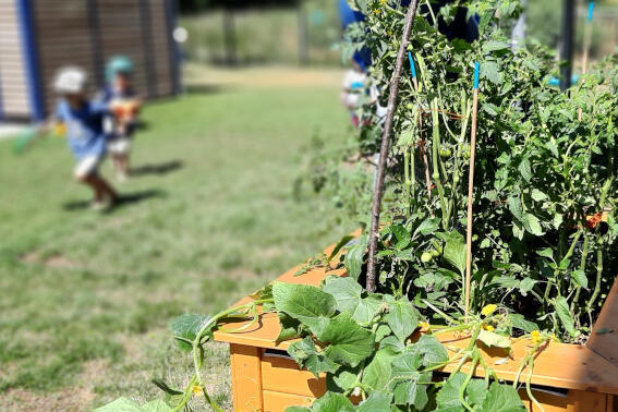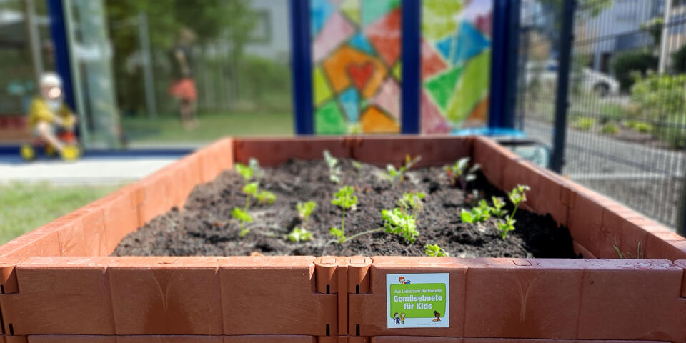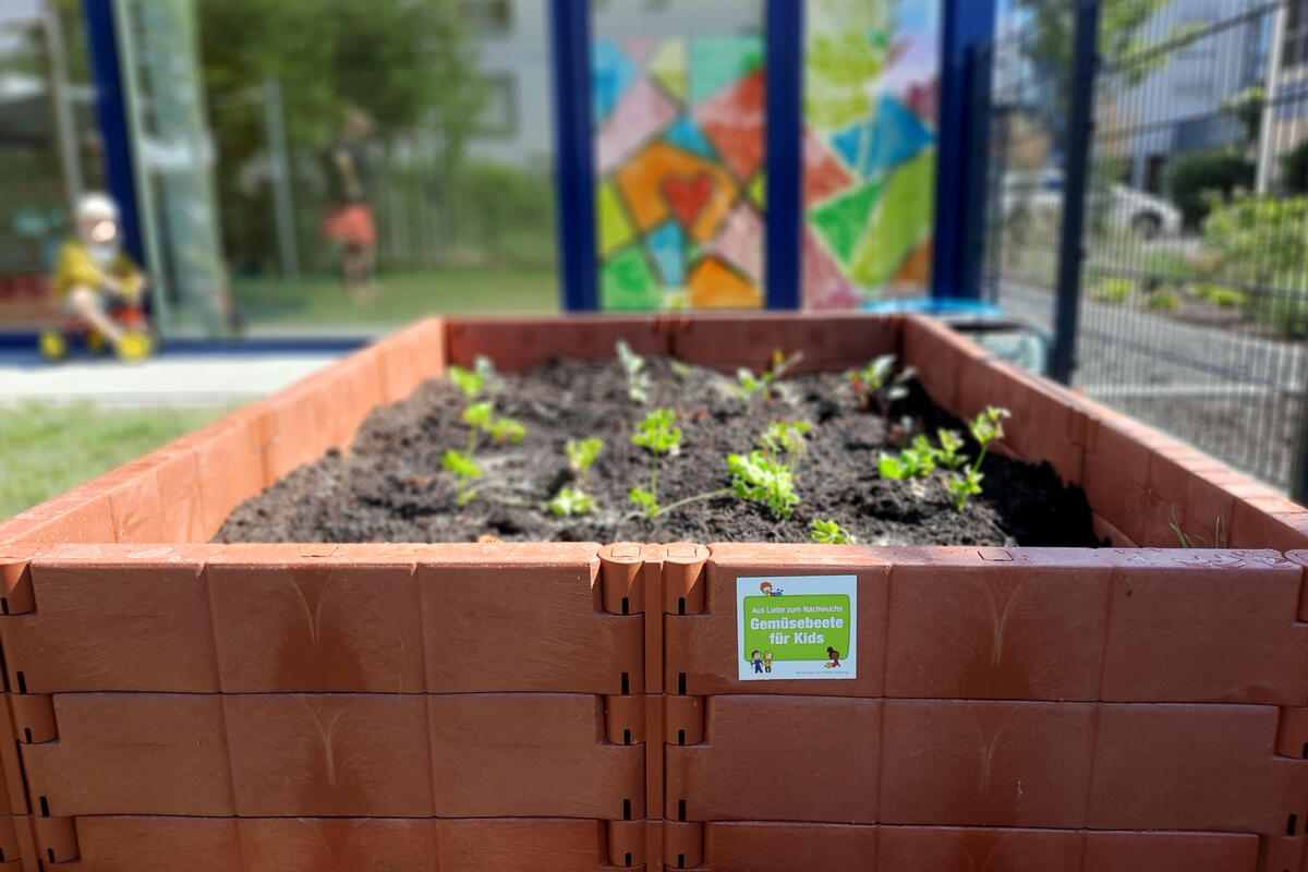 „Mit den Hochbeeten haben wir einen überschaubaren Aufwand, aber eine große Wirkung: Die Kinder können dort selbst buddeln, einpflanzen, gießen und bald dann auch ernten und so Natur hautnah erleben“, erzählt Kerstin Kolb. Im Hochbeet, das von der VR Bank gestiftet wurde, sind sogar schon die ersten kleinen Gurken zu sehen. Noch ein bisschen Geduld und dann kann das erste selbst angebaute Gemüse vernascht werden! Die kleinen Gärtner beobachten auf jeden Fall ganz genau, was sich in „ihren“ Beeten tut und sie übernehmen auch Verantwortung: Denn gerade in diesen warmen Wochen muss jeden Tag gut gegossen werden!
