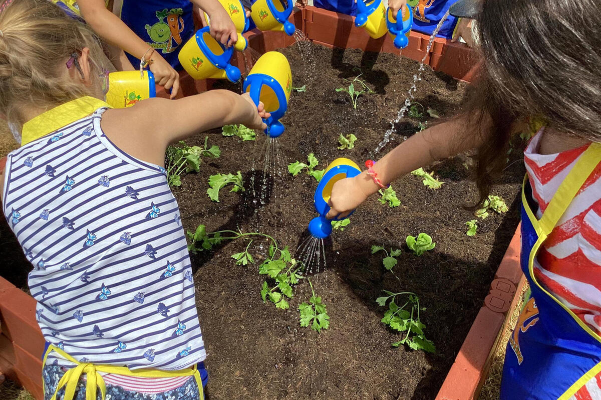„Unsere Kinder sind total begeistert. Schon das Aufbauen der Hochbeete haben sie neugierig verfolgt und als sie dann gleich selbst die ersten Sachen anpflanzen durften, waren sie mit Feuereifer dabei“, erzählt Kita-Leiterin Kerstin Kolb. Das Edeka-Team brachte neben Beet, Erde und Saatgut auch gleich noch Gießkännchen und Gärtnerschürzen mit, die sofort fleißig genutzt wurden.