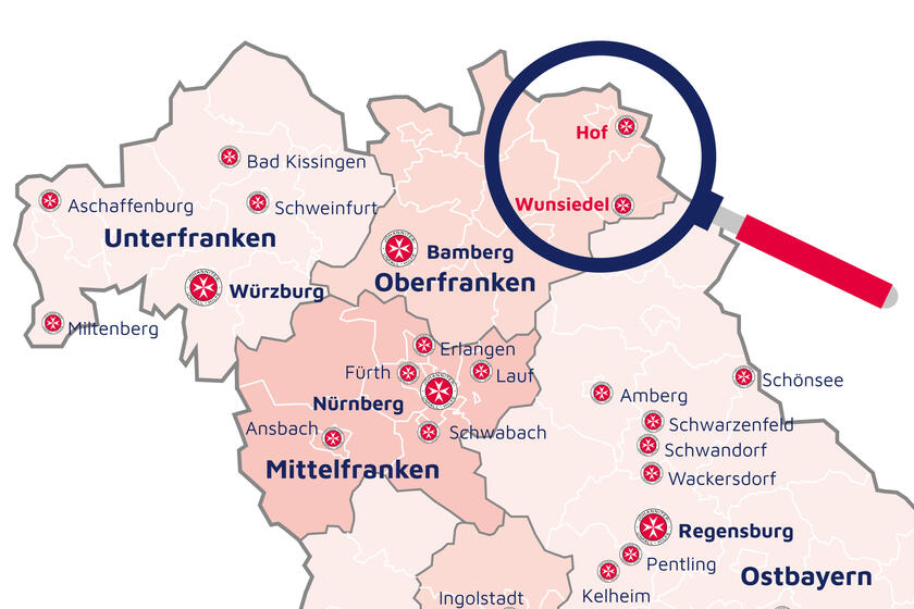 Zum 1. Januar 2026 wechseln die Johanniter-Zuständigkeiten der Landkreise Wunsiedel und Hof vom Regionalverband Ostbayern zum Regionalverband Oberfranken. „Mit der Übernahme der Landkreise Hof und Wunsiedel schaffen wir eine klare Zuordnung zum Regierungsbezirk Oberfranken und vereinfachen damit die Zusammenarbeit mit den zuständigen Behörden“, sagt Philipp Geus, hauptamtliches Mitglied des Regionalvorstandes Oberfranken. „Wir freuen uns sehr, die neuen Mitarbeitenden herzlich in unserem Regionalverband willkommen zu heißen.“