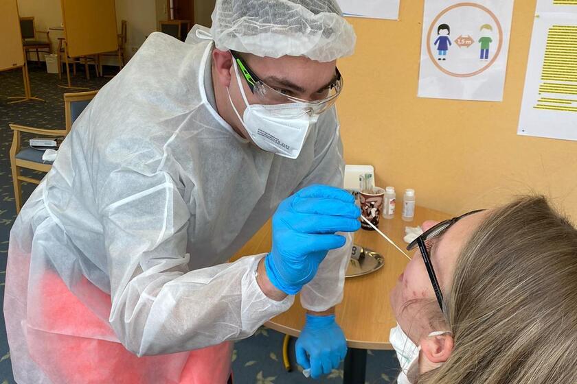 Wolfenbüttel. Es wird weiter getestet! Kurz vor Weihnachten haben Mitarbeitende des Ortsverbands Braunschweig der Johanniter-Unfall-Hilfe (JUH) damit begonnen, das Pflegeheim der Grotjahn-Stiftung in Schladen im Landkreis Wolfenbüttel bei der Durchführung der Corona-Schnelltests zu unterstützen. Der Einsatz geht weiter: mindestens bis zum 31. Januar.