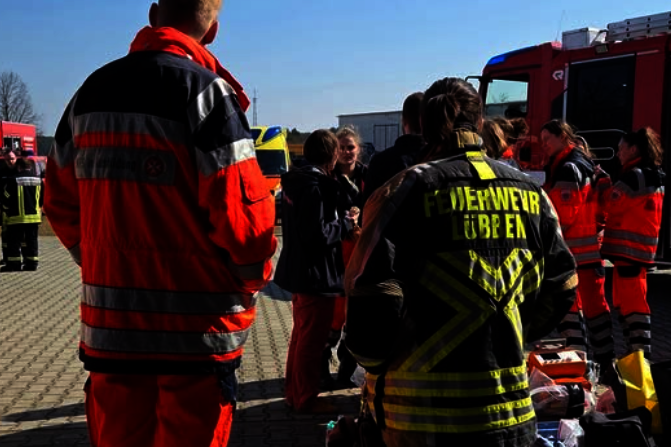 Freiwalde, Samstagmorgen, 08:59 Uhr. Pünktlich wird der Ausbildungstag für 12 unserer Notfallsanitäter-Azubis vom Rettungsdienst Dahme-Spreewald und die Feuerwehren aus der Region eröffnet.