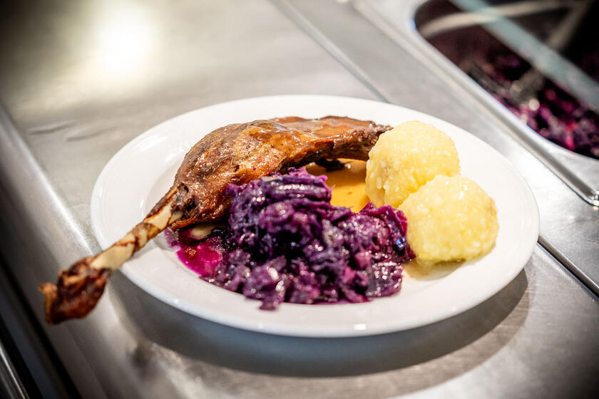 In der Weihnachtszeit allein sein? Nicht im „Kochkessel“ Leipzig! Am 12. Dezember erlebten rund 100 Seniorinnen und Senioren einen besonderen Nachmittag voller Gemeinschaft, Herzlichkeit und festlichem Essen. Im stimmungsvoll dekorierten Speiseraum der Kantine servierte das Team der Johanniter-Dienste GmbH ein erstklassiges Menü aus Gänsekeule, Klößen, Rotkraut und Rosenkohl.