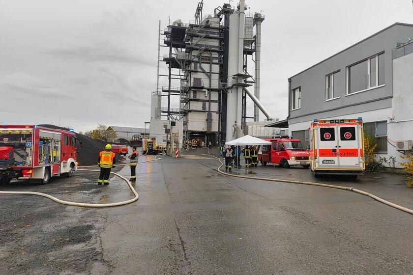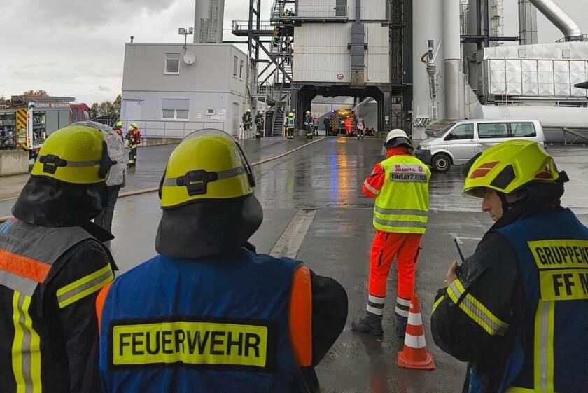 Gemeinsame Einsatzübung im Asphaltmischwerk