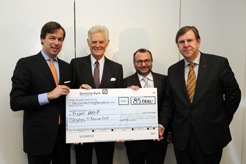 „Im Zentrum des Projekts „aktiF“ steht der Kontakt und die Ansprache der türkischen Familien in München. Sie sollen von der Bedeutung und Notwendigkeit erfolgreicher Schul- und Ausbildungsabschlüsse ihrer Kinder überzeugt und in die Berufswahl- vorbereitung einbezogen werden“, so Graf zu Dohna, Regierender Kommendator der Bayr. Genossenschaft des Johanniterordens. Neben der Agentur für Arbeit, die ca. die Hälfte der Gesamtkosten des Projektes trägt, erfolgt maßgeblich die Finanzierung durch die Deutsche Bank Stiftung. Am heutigen Tage wurden den Projektverantwortlichen durch die Stiftung ein Scheck in Höhe von 85.000€ übergeben.
