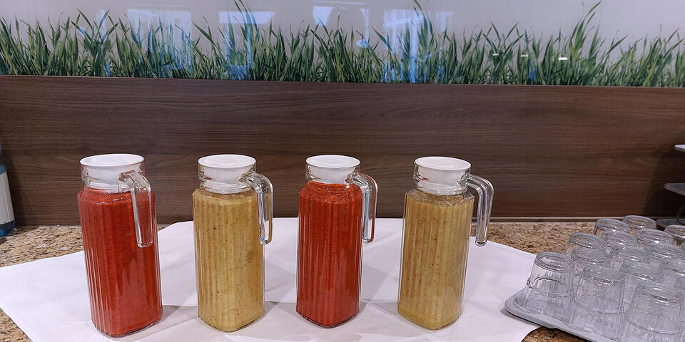 Mit dem selbst gestalteten Motto-T-Shirt “Fit in den Frühling mit dem Frühlings-Frühstück“, begrüßte uns unsere neue Gesundheitsbeauftragte, Nadine Mahlstedt, im März. Sie überraschte uns mit einem sehr gesunden Frühstück. Eine kleine Auszeit vom Berufsalltag mit vielen gesunden Leckereien, wie beispielsweise Smoothies, Brotaufstrichen wie Hummus und Avocado-Creme, leckerem Vollkornbrot und vielem mehr. Ein herzliches Dankeschön an unsere neue Gesundheitsbeauftragte sowie an das Küchenteam für die Unterstützung bei dieser tollen Aktion.