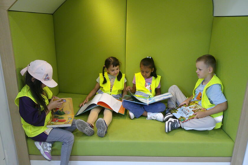 Nach einem stärkenden Frühstück in der Kita ging es los: Ausgerüstet mit sicheren Warnwesten und voller Vorfreude fuhren wir gemeinsam mit dem Bus in die Lüner Innenstadt. Dort wurden wir herzlich in der neu bezogenen Stadtbücherei empfangen.