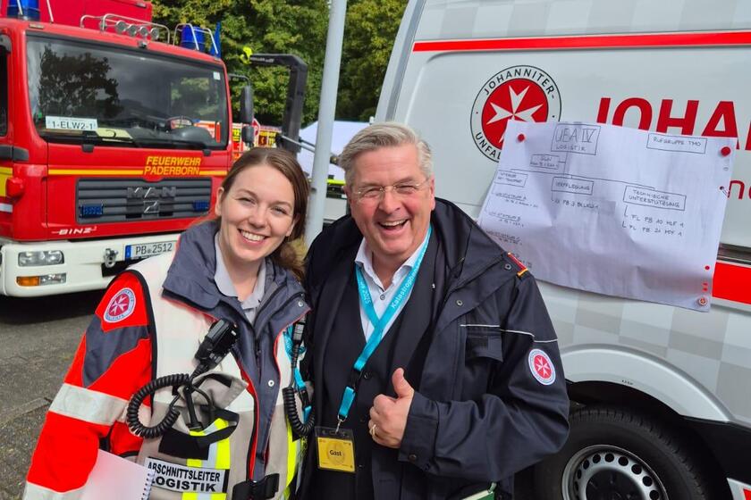 Mit dabei waren auch Kolleginnen und Kollegen aus unseren Ortsverbänden Werther und Schloss Holte-Stukenbrock. Geballte ostwestfälische Johanniter-Power! Auch unser Landesvorstand Matthias Cramer stattete uns einen Besuch ab.
