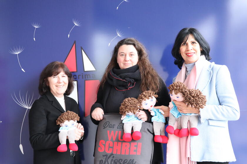 Bildunterschrift: v.l.n.r. Brigitte Huss (Mitglied im Regionalvorstand der Johanniter in Bayerisch Schwaben), Christine Joos (Leitung Lacrima Ulm/Neu-Ulm), Ursula Schumacher (Leitung Radio 7 Drachenkinder)