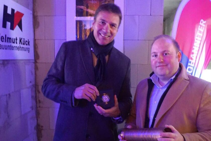 Die Sonne hätte trotz klirrender Kälte zu diesem Ereignis nicht besser lachen können. Gut gelaunt wurde die Zeitkapsel mit einer Tageszeitung und einer silbernen Johanniter-Münze einbetoniert. Dafür nahmen Johanniter Regionalvorstand Christian Dieckhöfer und Investor Tobias Warmbold höchstpersönlich die Maurerkelle in die Hand. Bei kleinen Snacks und lockeren Gesprächen klang der Tag dann auf der Baustelle aus.