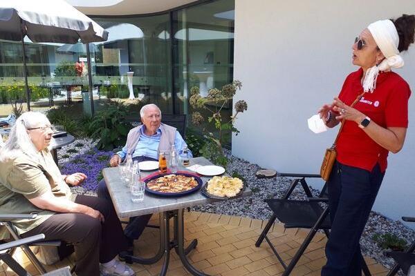 In diesem Jahr bestimmten die beiden, dass ein Teil der Stiftungsmittel ein weiteres Mal dorthin gehen soll. Heute war es nun soweit. Gemeinsam mit Stefan A. Becker, Beauftragter für Öffentlichkeitsarbeit des Johanniterordens, überbrachten sie einen Spendenscheck und tauschten sich mit unserer Koordinatorin Babett Zimmer zum neuesten Stand und aktuellen Projekten aus. Wir bedankten uns auf orientalisch mit Baklava und Knafeh für die großzügige Unterstützung - alles selbstgemacht aus der Gemeinschaftsküche des Integrationszentrums und herrlich süß.