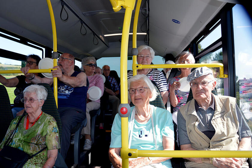 Mit diesem alten Volkslied auf den Lippen startete das Johanniter-Stift Gronau zu einem Busausflug durch das schöne Leine-Bergland zum Waldhotel Humboldt. Bei sommerlichen Temperaturen genossen die Bewohner und Bewohnerinnen die Fahrt im klimatisierten Bus durch ihre Heimat. Bei Kaffee und Kuchen, kühlen Getränken oder auch einem Eisbecher, kam man ins Gespräch und die Zeit verging wie im Flug. Organisiert hat die Fahrt die Johanniter-Hilfsgemeinschaft Hildesheim (JHG), die auch tatkräftig beim Ein- und Ausladen der Rollatoren und Rollstühle unterstützte und den Ausflug begleitete.