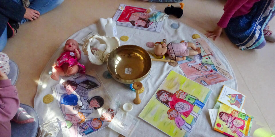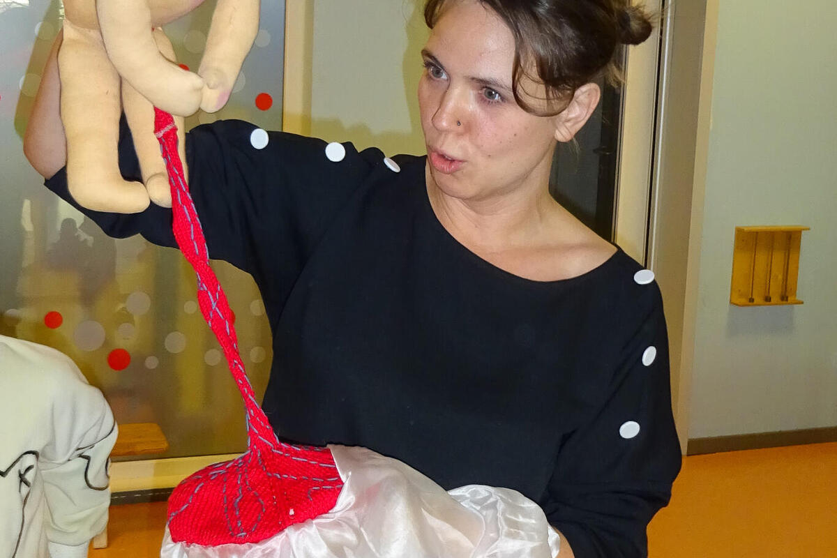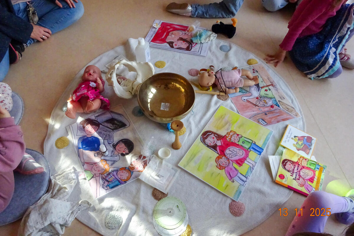 Im November haben drei Hebammen vom Klinikum St. Georg – eine davon selbst Mama bei "Claras Kindern" – die Einrichtung besucht und den Kindern ihren Beruf vorgestellt.