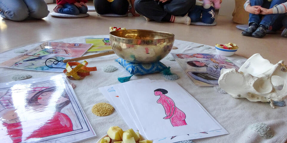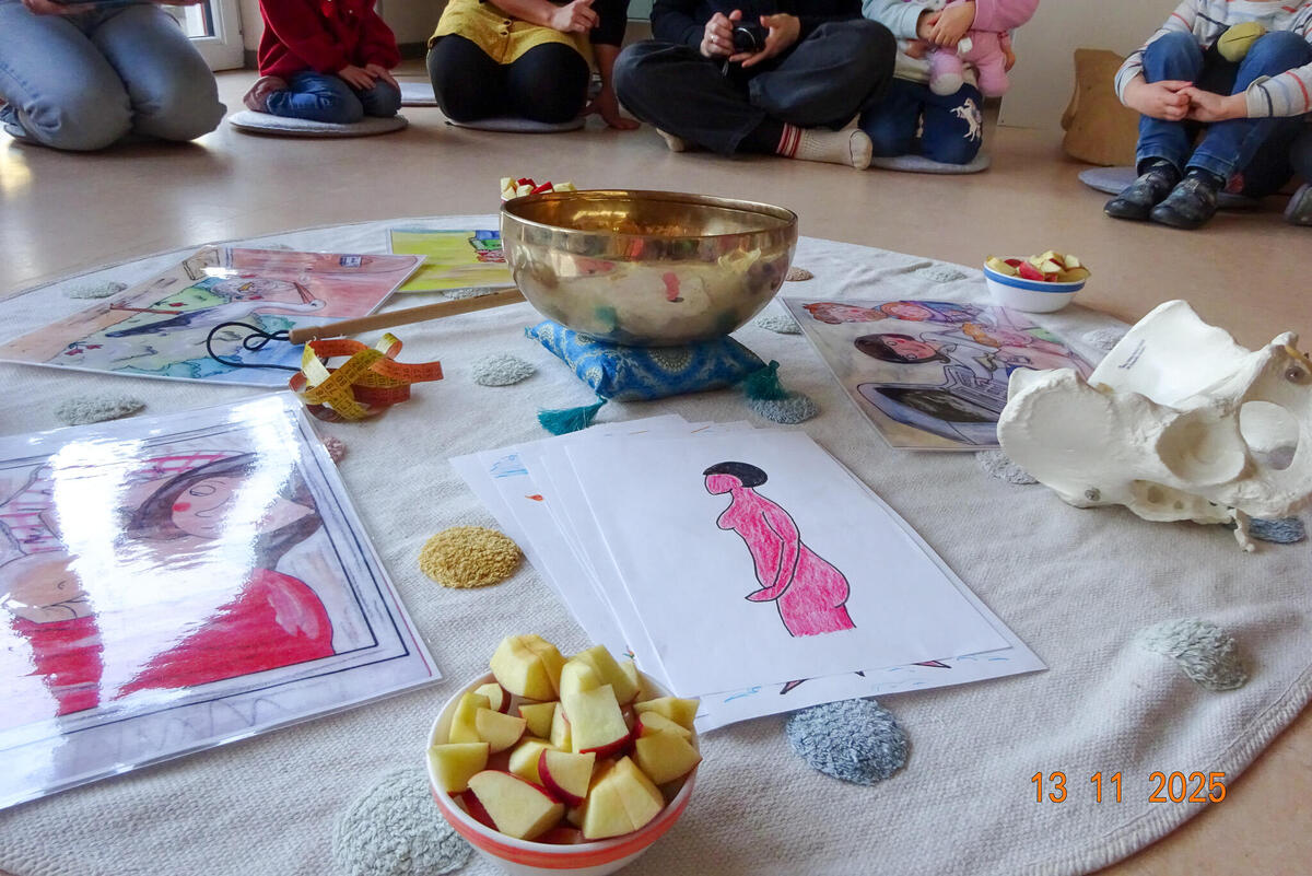 Gemeinsam wurde über den Körper, Schwangerschaft und Geburt gesprochen. Die Kinder hatte tolle Fragen und waren sehr interessiert. Am Beispiel von verschiedenem Obst und Gemüse haben sie erfahren, wie schnell ein Baby im Bauch wächst. Was hört ein Baby eigentlich im Bauch und wie fühlt sich die Geburt für das Kind an? Beides wurde erkundet und nachgespielt. Am Ende haben die Kinder ihre Kuscheltiere und Puppen auf dem Gebärhocker geboren. Zudem wurde gewickelt, gewogen und Herztöne gehört. Was für ein toller Besuch. Wir sagen ganz herzlichen Dank für diese wunderbare Erfahrung!