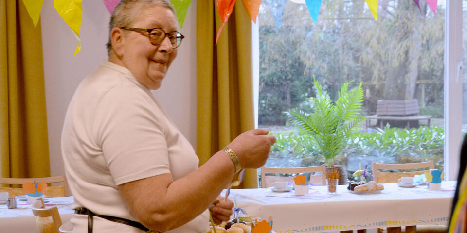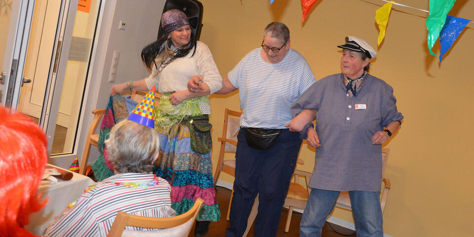 Basteln, falten, kleben: Mit liebevoller Unterstützung der Mitarbeitenden in der Betreuung liefen seit Wochen Vorbereitungen. Die Bewohnerinnen und Bewohner im Quellenhof fertigten ansprechende und bunte Tischdekorationen für ihre Karnevalfeier am 12. Februar 2024 (Rosenmontag).