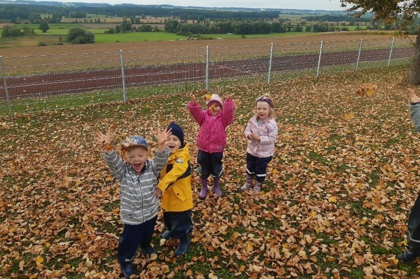 Die Übergangsgruppe des Johanniter-Kinderhauses Aufhausen erlebt den Herbst spielerisch