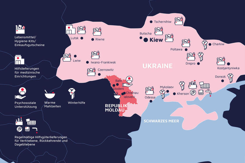 Wir Johanniter bleiben stets an der Seite der ukrainischen Bevölkerung, die durch den Angriffskrieg Russlands täglichem Leid ausgesetzt ist. Es bleibt für uns ein wichtiges Anliegen, die traumatisierten Menschen in der Ukraine weiterhin mit konkreter Hilfe zu unterstützen. 327.000 Menschen wurden mit Nothilfemaßnahmen durch die Johanniter im Jahr 2023 erreicht. 14,6 Millionen Menschen sind weiterhin dringend auf Unterstützung angewiesen.
