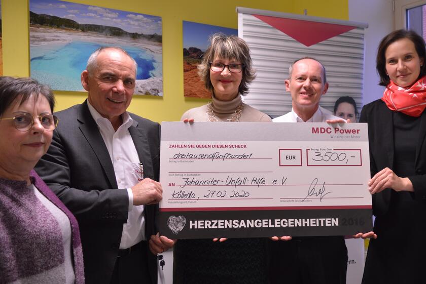 Das Kölledaer Motorenwerk MDC Power unterstützt die Arbeit in der Notfallseelsorge und die Hospizarbeit der Johanniter in Mittelthüringen mit 3.500 Euro. Damit soll vor allem die Aus- und Weiterbildung der ehrenamtlichen Mitarbeiter finanziert werden.
