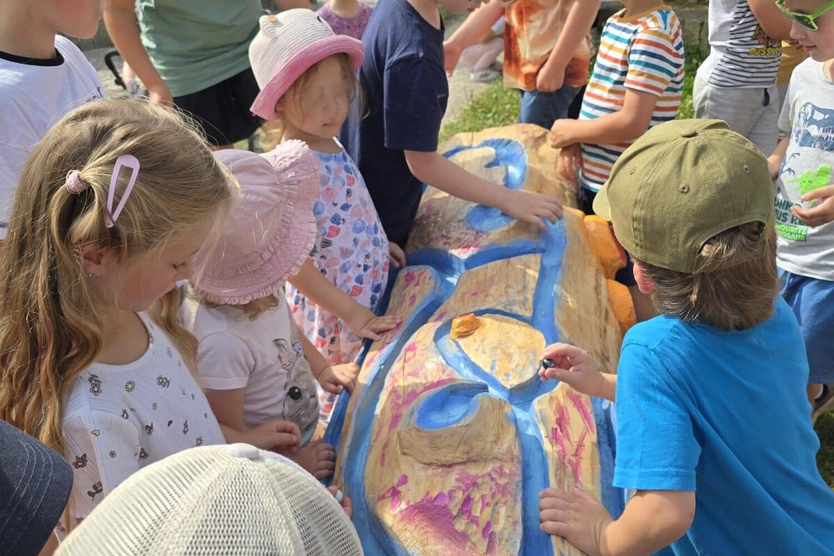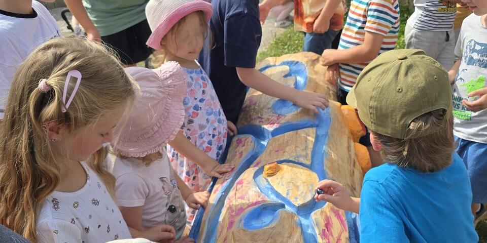Vergangene Woche wurde die neue Baumstamm-Murmelbahn feierlich in unserer Kita "Brummkreisel" in Gablenz eingeweiht – seitdem ist sie im Dauereinsatz.