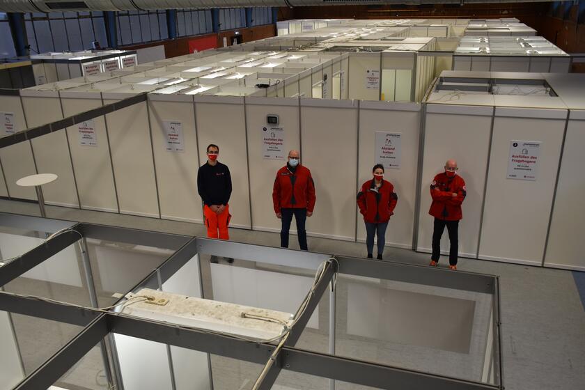 Gemeinsam mit einem Buchholzer Messebauer haben wir das Impfzentrum Buchholz in nur sechs Tagen aufgebaut - dank der tatkräftigen Unterstützung unserer ehrenamtlichen Helfer.