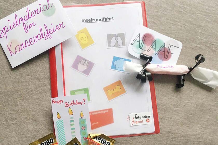 Die Beiden schicken regelmäßig ein kleines Überraschungspaket zu unseren Jugendlichen nach Hause. Darin gibt es allerlei Interessantes und Unterhaltsames zu einem speziellen Erste-Hilfe-Thema. So „reisen“ sie gemeinsam in den nächsten Monaten von einer Themen-Insel zur nächsten. Angefangen wird mit dem Thema: "nicht erweckbar". Was ist zu tun, wenn jemand nicht erweckbar ist? Diese und andere interessante Fragen werden rund um diese Thema in der Online-Gruppenstunde besprochen. Eine Gruppenstunde beschäftigt sich auch mit der Frage: Wie ist es, einen Tag mit Koma-Patienten zu verbringen? Gloria und Hanna sind mit viel Freude bei der Sache. So macht Jugendarbeit Spaß und der Zusammenhalt der Jugendlichen wird auch in Corona-Zeiten gut gestärkt.