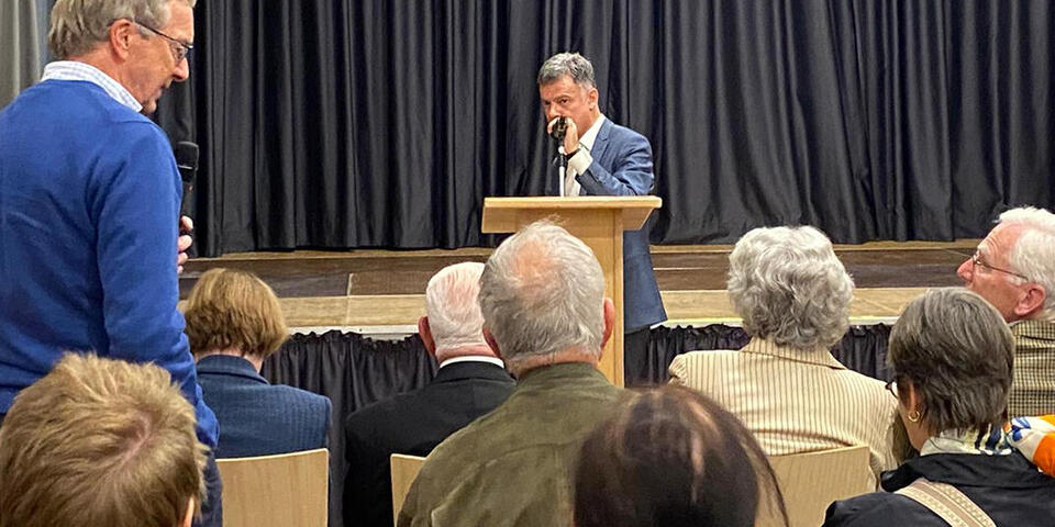 Prof Dr. Giovanni Maio, deutscher Mediziner, Philosoph und Universitätsprofessor für Medizinethik an der Albert-Ludwigs-Universität in Freiburg, referierte anlässlich der Veranstaltungsreihe zum Thema "Hospize als zukunftsweisende Antwort auf die Verletzlichkeit des Menschen". Vor rund 40 Personen informierte er über die Verletzlichkeit des Menschen und die daraus resultierende Sorgekultur, um dann auf die Vorbildfunktion der Hospize einzugehen.