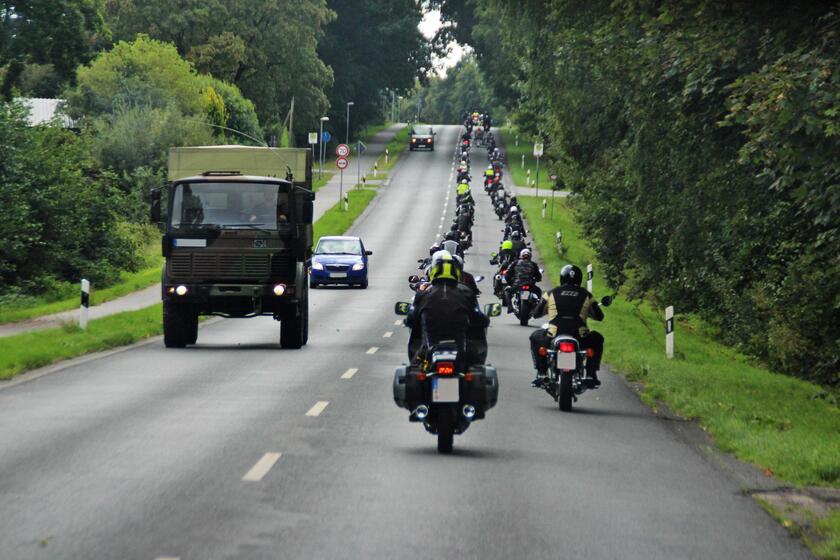 Rund 40 Biker haben an der ökumenischen Wallfahrt durch das Cuxland zur Gedenkstätte in der Wingst Ellerbruch teilgenommen. Nach einem Gottesdienst in der Petrikirche zu Cuxhaven ging die Pilgertour gegen Mittag los. Begleitet wurde die rund 70 Kilometer lange Fahrt mit einem Polizeimotorrad, dem Motorrad der Motorradstaffel der Johanniter Unfall-Hilfe und einem Begleitfahrzeug. Marcus Christ und Diakon Samuel Elsner haben die Veranstaltung begleitet.