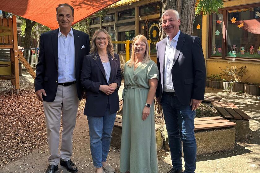 Die Spendenübergabe fand in der Johanniter-Kita „Kindertraum“ im Stift Haug statt. Dabei waren das ehrenamtliche Vorstandsmitglied der unterfränkischen Johanniter, Dr. med. Frank Schiefelbein, die Einrichtungsleitung Selina Geißler, Vera Götz, hauptamtliches Mitglied des Regionalvorstandes der Johanniter, sowie Thomas Kestler, Vorsitzender des Hilfswerks des Lions Clubs Würzburg-West, vor Ort.