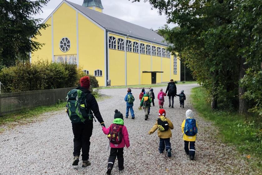 Johanniter Waldkindergarten besucht die Kirche "Maria zur guten Heimkehr" in Laub.