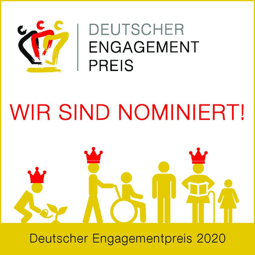 Das Projekt hat jetzt die Chance bei der feierlichen Preisverleihung des Deutschen Engagement Preises am 3. Dezember 2020 in Berlin geehrt zu werden. Auf die Gewinnerinnen und Gewinner der fünf Kategorien Chancen schaffen, Leben bewahren, Generationen verbinden, Grenzen überwinden und Demokratie stärken warten Preisgelder in Höhe von je 5.000 Euro. Eine Experten-Jury bestimmt die Preisträgerinnen und Preisträger dieser Kategorien. Über den mit 10.000 Euro dotierten Publikumspreis stimmen die Bürgerinnen und Bürger im Herbst 2020 online unter www.deutscher-engagementpreis.de ab.