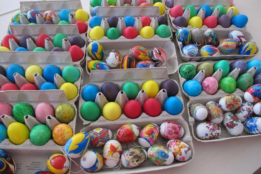 BU: Über 100 selbstgefärbte Ostereier - vier verschiedene Färbetechniken kamen zum Einsatz