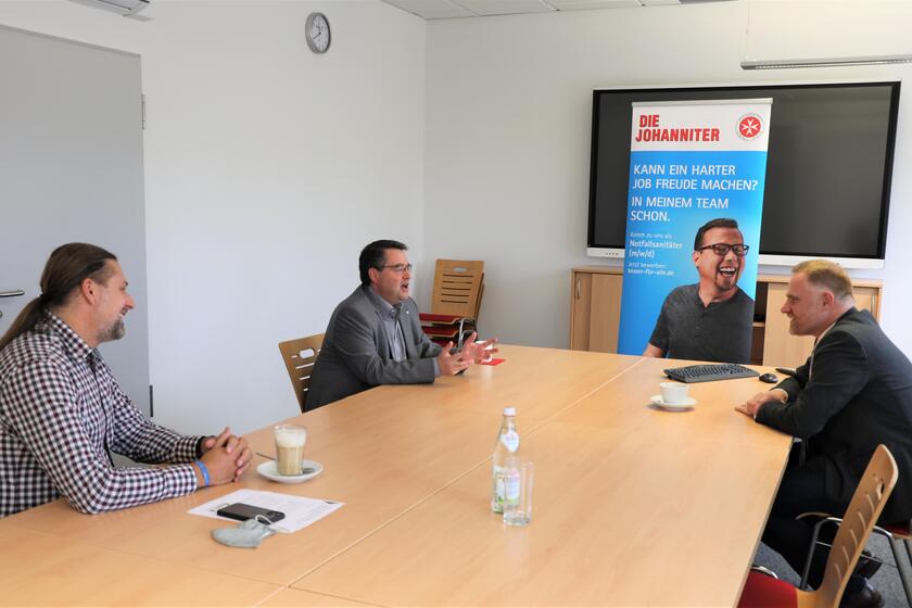 Aus diesem Grund kam der Bundestagsabgeordnete Peter Aumer in die Regionalgeschäftsstelle der Johanniter in Ostbayern, um mit Johanniter-Regionalvorstand Martin Steinkirchner und Rettungsdienstleiter Frank Zirngibl zu sprechen.
