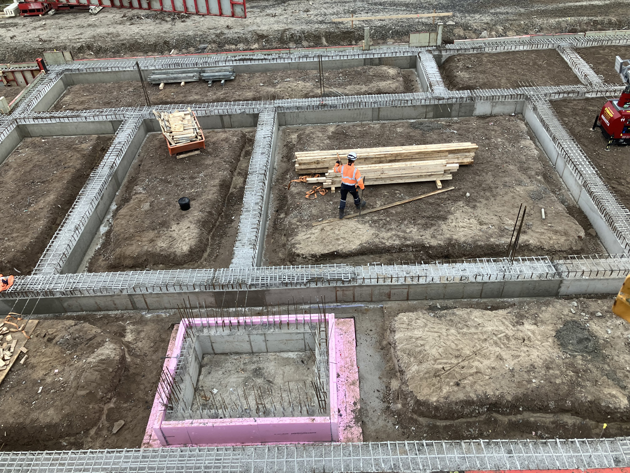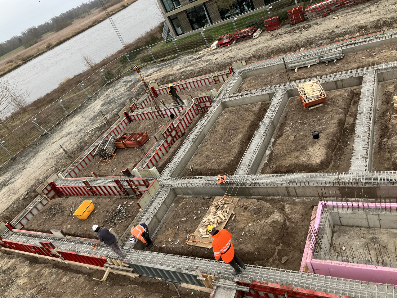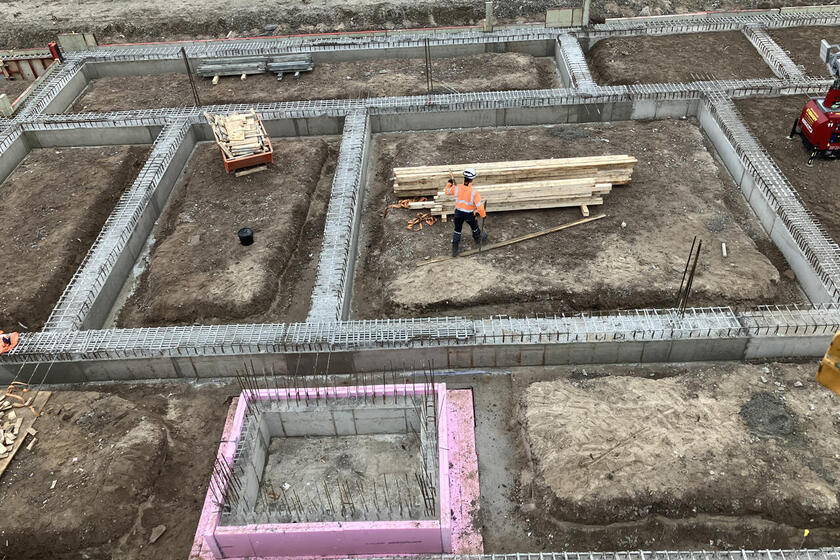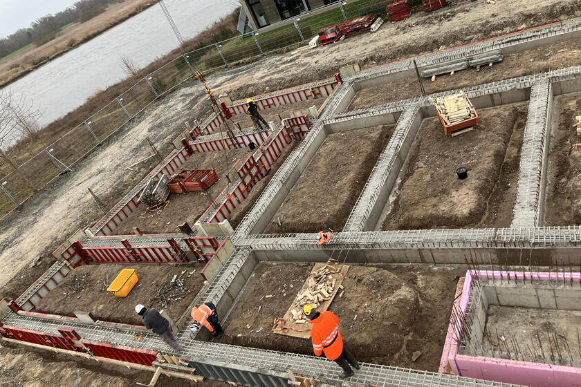 Kurz vor dem Jahresende nochmal zwei Fotos vom weiteren Baufortschritt: Die Streifenfundamente für die Sohle sind nun soweit vorbereitet und der letzte Abschnitt kann gegossen werden.