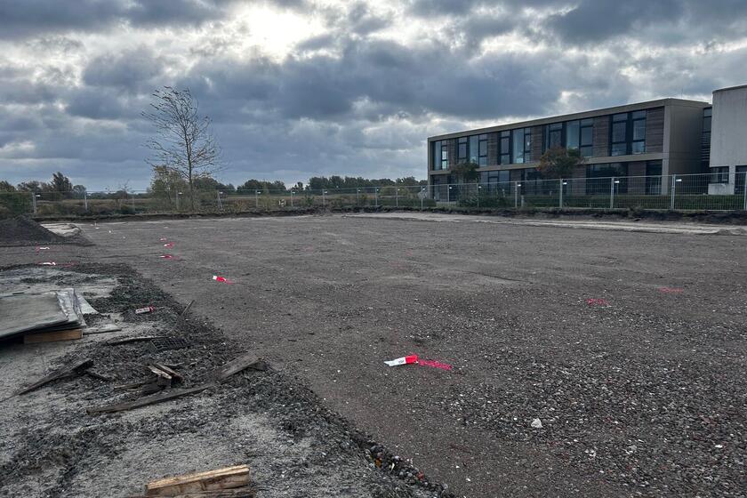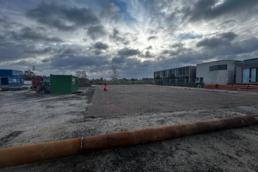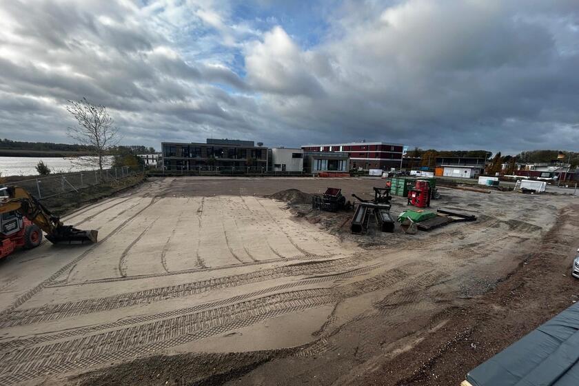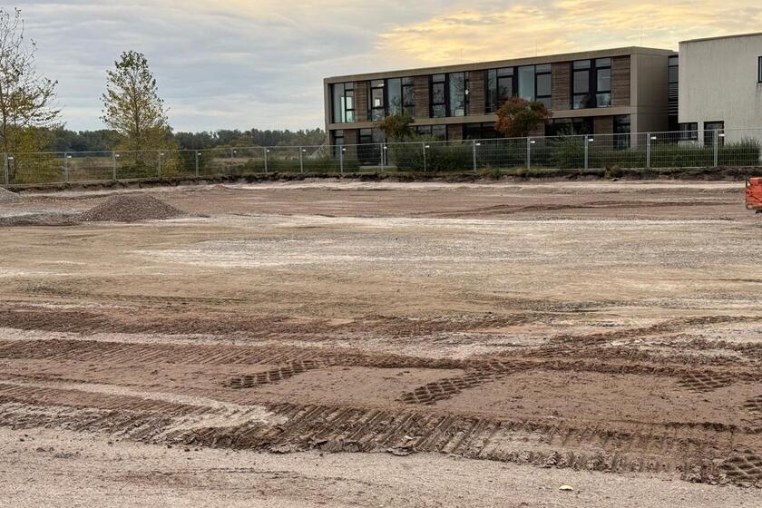 Die Erdarbeiten werden fortgeführt, die Fläche planiert und befestigt.