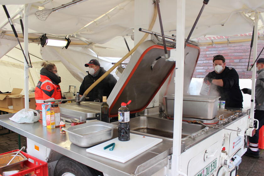 Da viele Bürgerinnen und Bürger anderweitig bei ihren Familien oder in Hotels untergekommen waren, betreuten die Johanniter im Evakuierungszentrum 129 Bürger, drei Hunde und sechs Katzen. Die Helferinnen und Helfer aus dem Regionalverband Harz-Heide waren hauptsächlich im Bereich der Registrierung und Aufteilung der Gäste auf Klassenzimmer und der Bürgerinformation eingesetzt. Außerdem waren sie für die Helferverpflegung rund um die Uhr zuständig. „Es war ein besonderer Einsatz“, sagt Sven Kaspersinski, Regionalbereitschaftsführer Harz-Heide. „Nicht nur wegen der eigentlichen Situation vor Ort, sondern auch wegen der Corona-Bedingungen und der strikten Einhaltung der Hygienevorschriften. Dies erschwert den sozialen Kontakt zu den Menschen und auch manche Handreichung. Ansonsten war es aber ein nachhaltiges Erlebnis für jeden Ehrenamtlichen von uns.“ Und Verbandsführer Dirk Hoppenstedt aus dem Ortsverband Celle, der den größten Anteil am Harz-Heide-Kontingent stellte, ergänzt: „Trotz Corona, heftigen Schneefalls auf der Anfahrt und sehr wenig Schlaf – es passte einfach untereinander. Die Zusammenarbeit aller Johanniter und die Verbindung mit den Göttingern, die Dankbarkeit der Menschen lassen ein Johanniter-Herz höherschlagen.“
