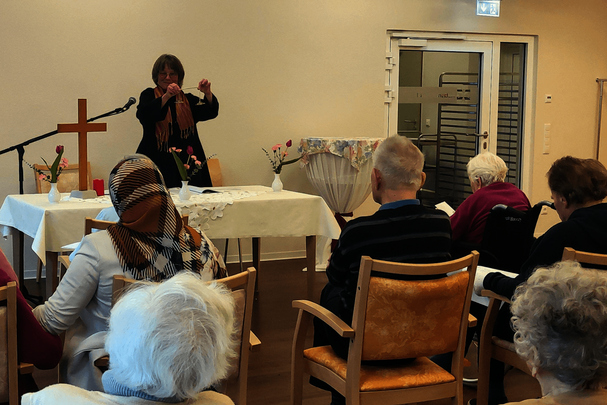 Nach der Osterandacht mit Pastorin Brämer gab es für alle Bewohnerinnen und Bewohner im großen Garten des Quellenhofs eine tolle Ostereisuche.