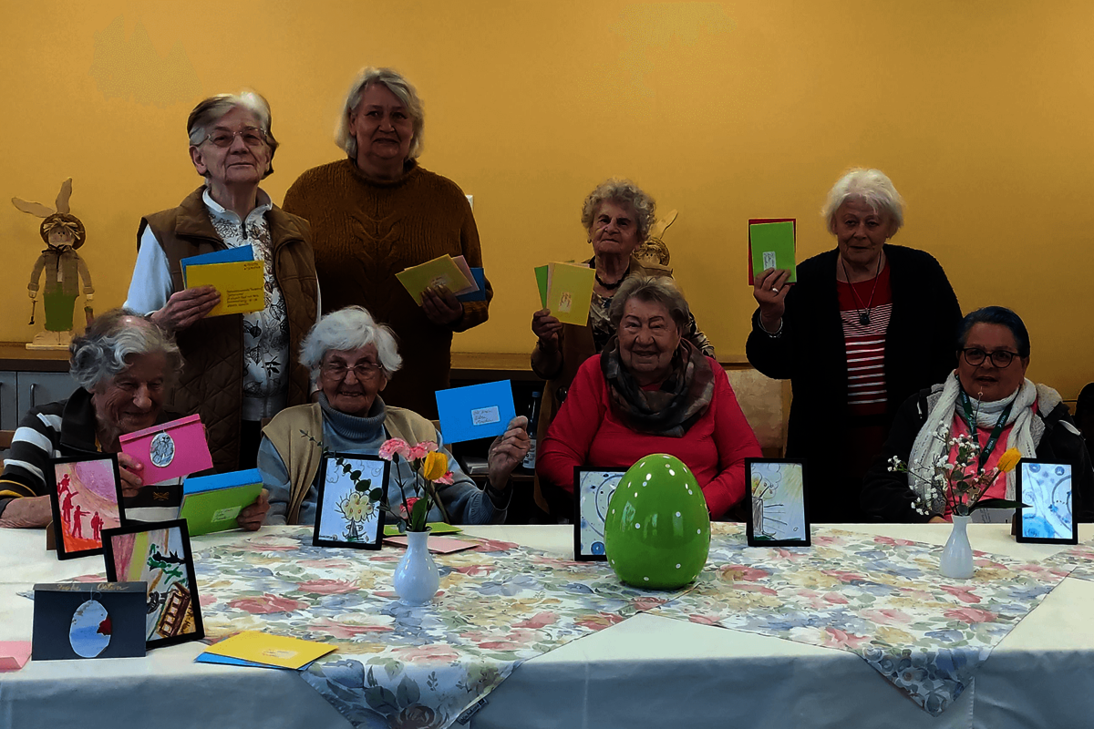 Neben der Aktion Post mit Herz, durch die uns viele liebevoll gestaltete Postkarten erreichten, gab es noch eine Kartenaktion von Kindern der Gemeinschaftsunterkunft Ostseestraße in Travemünde. „Über die gemalten und gebastelten Karten der Kinder haben sich unsere Bewohnerinnen und Bewohner sehr gefreut,“ so Markus Lebeck, Leiter des Sozialen Dienstes im Quellenhof. „Den Menschen, die nicht mehr so fit sind, bringen wir die Ostereier und Briefe auf ihr Zimmer,“ fügt er hinzu.