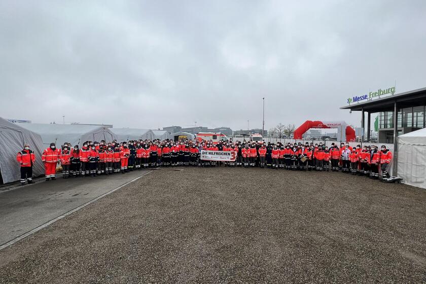 Beim ersten Freiburg Marathon seit Beginn der Corona-Pandemie leisteten "Die Hilfreichen 3", die Freiburger Hilfsorganisationen, den Sanitätsdienst für die rund 10.000 Teilnehmenden und Besuchenden.