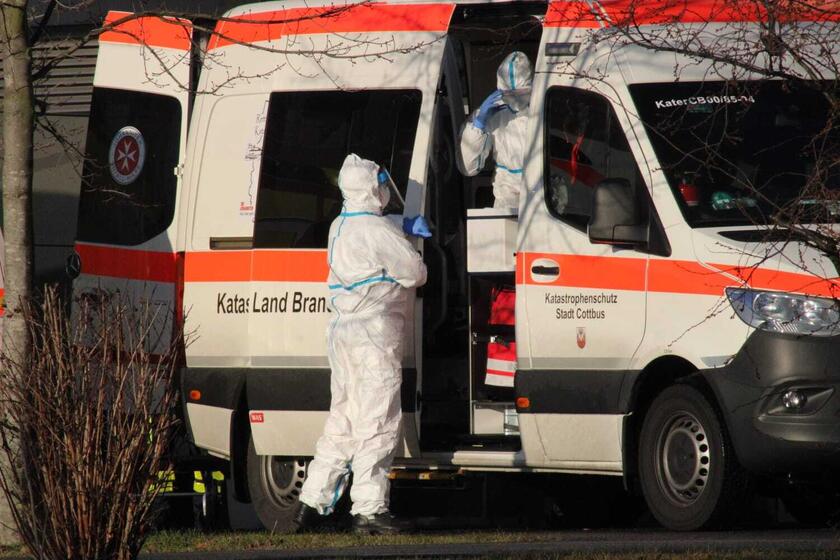 Auch am Samstag waren wieder zahlreiche Fahrzeuge inkl. Einsatzkräfte der Johanniter Südbrandenburg (aus Lübben und Cottbus) zusammen mit Einheiten des DRK im Einsatz. Seit den Morgenstunden wurden Covid-19 infizierte Personen mit unterschiedlichem Schweregrad der Erkrankung aus Kliniken im Landkreis Spree-Neiße in Krankenkäuser nach Sachsen-Anhalt verlegt.