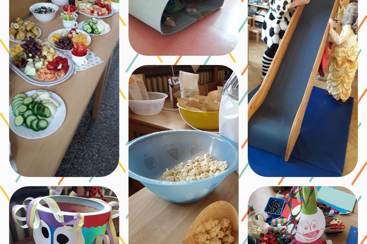 Mit einer Faschingsrakete und einer lustigen Polonaise durch unser Haus starteten wir gemeinsam in den Tag. In jedem Raum gab es etwas zu entdecken und mitzumachen. Im Bienenzimmer konnte gerutscht werden, es gab eine Riesenmurmelbahn und leckeres Popcorn. Im Sonnenzimmer wurde getanzt, bei den Käfern wurden Instrumente gespielt. Gemeinsames Basteln war in der Hasengruppe angesagt und in unserem Mehrzweckraum wurde bei Wettspielen fleißig mitgemacht.