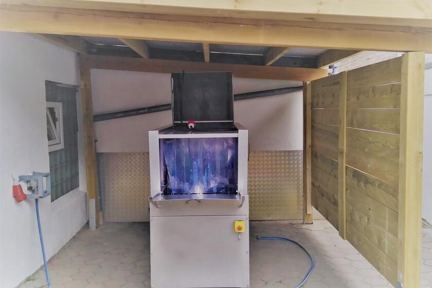 Kistenwaschmaschine mit Carport für Flensburger Tafel