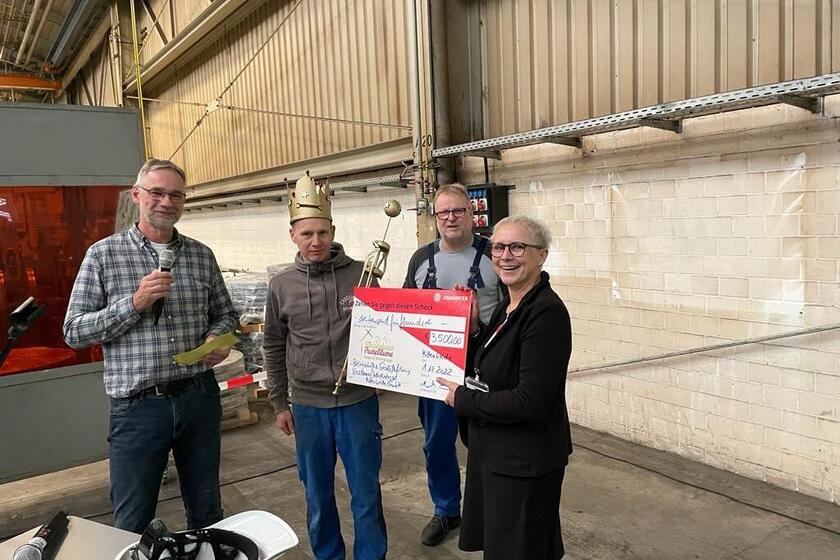 Die Belegschaft des Viessmann-Werkes in Mittenwalde kürte gestern auf der Mitarbeiterversammlung ihren "Heimwerkerkönig 2022". Und die erste Amtshandlung von Steffen I. war die Übergabe eines Spendenschecks an unser Kinderhausüber 3.500 Euro! Wir finden, er füllt dieses Amt großartig aus.
