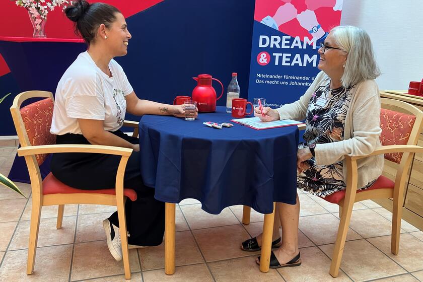 Ab dem 21. August können interessierte Pflegekräfte mittwochs zwischen 16 und 18 Uhr spontan im Johanniter-Haus Lindenpark, Esmarchstraße 22-24 in Elmshorn vorbeikommen und sich unkompliziert und ohne Termin vorstellen. „Wir bieten mit dem Bewerber-Café eine unkomplizierte Bewerbungs-Möglichkeit und Gelegenheit, unser Team und den Lindenpark kennen zu lernen“, so Martina Bieller-Großkopf, die Einrichtungsleiterin des Johanniter-Haus Lindenpark.