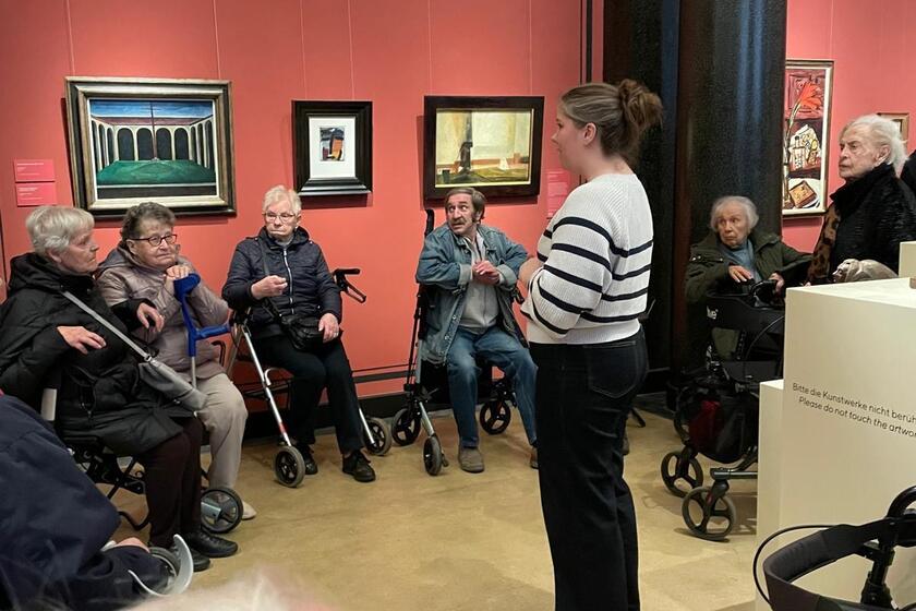 Im Museum angekommen, erwartete die Gruppe eine interessante Führung durch die Ausstellung moderner Kunst. Besonders positiv fiel die barrierefreie Gestaltung des Hauses auf. Rollstühle und Rollatoren konnten problemlos genutzt werden, sodass alle Gäste die Ausstellung in Ruhe erleben und den Erklärungen aufmerksam folgen konnten.