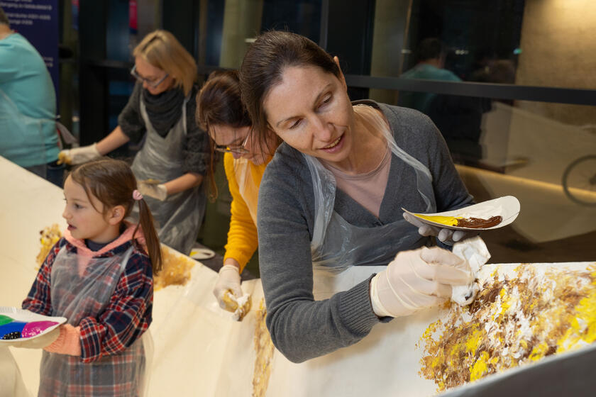 Das Motiv der Kunstaktion bringen die Teilnehmenden mit Acrylfarben auf das Boot. Es zeigt Inseln, ein aufgewühltes Meer mit schäumender Gischt, und soll die Fluchterfahrungen der Beteiligten widerspiegeln. Die Idee kommt von Nataliia Artamonova – eine ukrainische Künstlerin, die seit anderthalb Jahren in Leipzig lebt. Sie erläutert den Hintergrund: „Jeder Tag, der uns geschenkt wird, ist der erste in dem Lebensabschnitt, der uns noch bleibt. Deshalb machen wir uns auf den symbolischen Weg zwischen den Tiefen des Meeres bzw. des Lebens. Die Zuversicht bzw. die Hoffnung auf einen neuen Anfang sollen die Inseln zum Ausdruck bringen.“