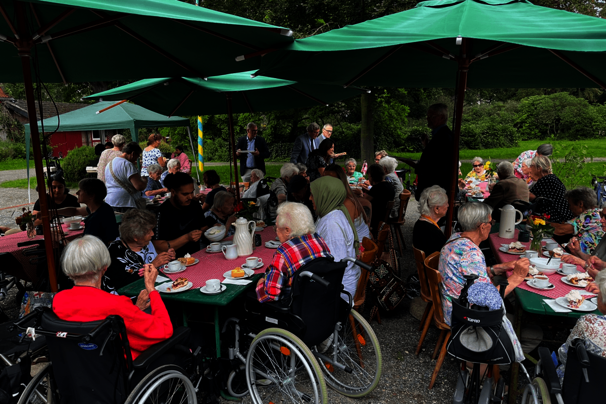 Mit Livemusik und gemeinsamen Gesang wurde am Nachmittag geschunkelt. Einige Gäste tanzten über das alte Hofpflaster und vergaßen vielleicht für einen Moment schmerzende Knie oder Gelenke. Zum Abschied meinte eine der tanzenden Damen mit Augenzwinkern: „Das war der schönste Tag seit Jahren – ich fühle mich heute leicht wie eine Feder.“