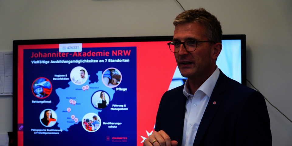 Daniel Hagemeier, Landtagsabgeordneter der CDU, besuchte gestern, am 4. September 2024, die Johanniter-Akademie NRW am Campus Münster und kam mit den Auszubildenden der Pflege- und Rettungsdienstschule Münster ins Gespräch.