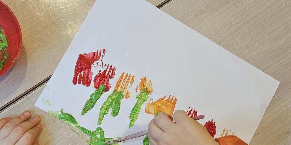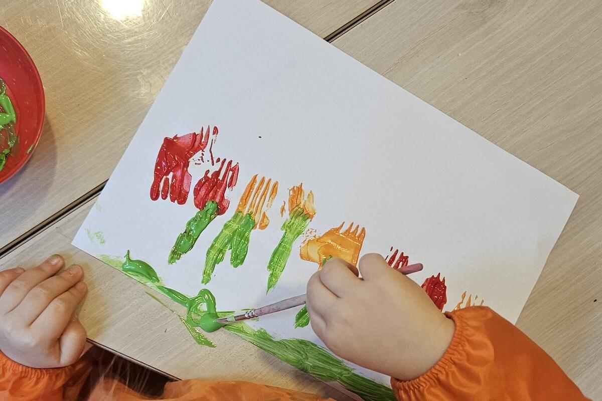 Mit Farben und Pinsel malen fördert die Kreativität. Stellt man dann noch unterschiedliche Werkzeuge zur Verfügung erreicht man die Kinder auch in ihrer Experimentierfreudigkeit.