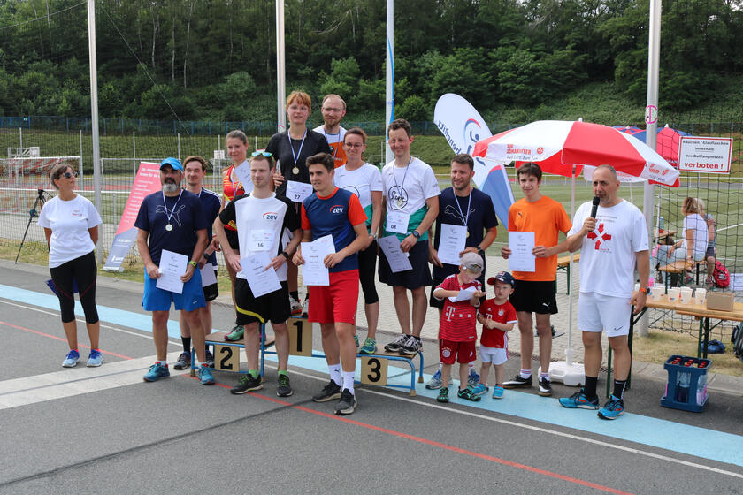 Geteilt in Kinder- und Erwachsenenlauf legten die Kinder dabei eine Strecke von 400 m zurück und erhielten für jede Runde ein Bändchen. Die Strecke der Erwachsenen war etwas länger. Die Männer und Frauen liefen im Stadion und auf der Dammkrone knapp 1 km. Auch hier wurden Bändchen verteilt. Laufpaten spenden dann einen gewählten Betrag pro Runde oder auch für die Teilnahme des Sportbegeisterten. Insgesamt wurden 571 Runden gelaufen und so knapp 550 km zurückgelegt. Auch verschiedene Teams waren aktiv dabei, wie u. a. von der GGZ Zwickau, der wewobau Zwickau, dem Autohaus LUEG und den CVJM sowie natürlich zahlreiche Johanniter und auch ZEV’ler