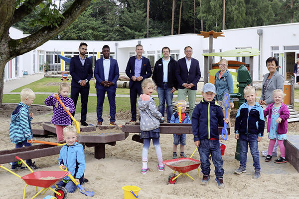 „Die Matschanlage ist ein neues Highlight in unserer Kita Regenbogen! Wir sind sicher, dass viele glückliche Kinder hier ihren leckeren Matschkuchen backen werden“, sind sich Leiterin Marion Gurcke und Matthias Schröder, Vorstand des Regionalverbandes Lippe-Höxter einig.